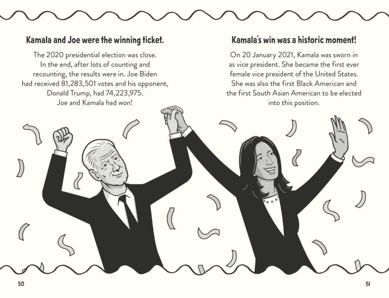 images below are from “Amazing Facts: Kamala Harris for HarperCollins. Yes it has a short shelf life (probably ten days or so before the election) but Kamala’s story and other achievements still amke for greta, inspiring reading.